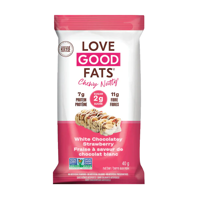 Love Good Fats | Chewy White Chocolatey Strawberry Bar 40g