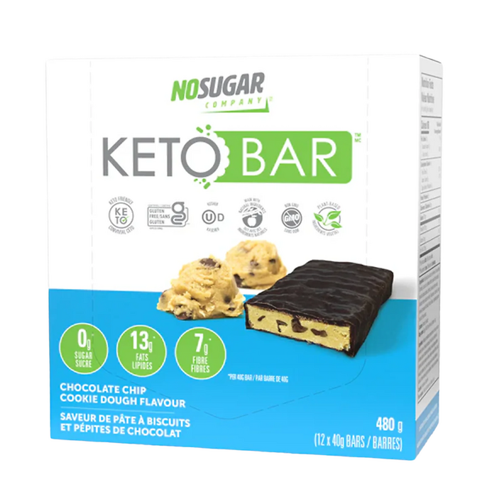 No Sugar Company | Chocolate Chip Cookie Dough Keto Bar Box (12x40g) Net Wt. 480g